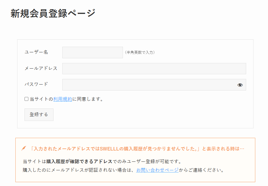 ※メールアドレスは、SWELL購入時と同じものにしてください。