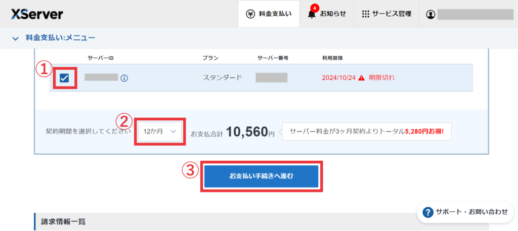 エックスサーバーお支払い手順